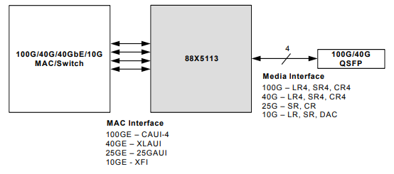 數據速率:25 Gb/s, 40 Gb/s, 100 Gb/s